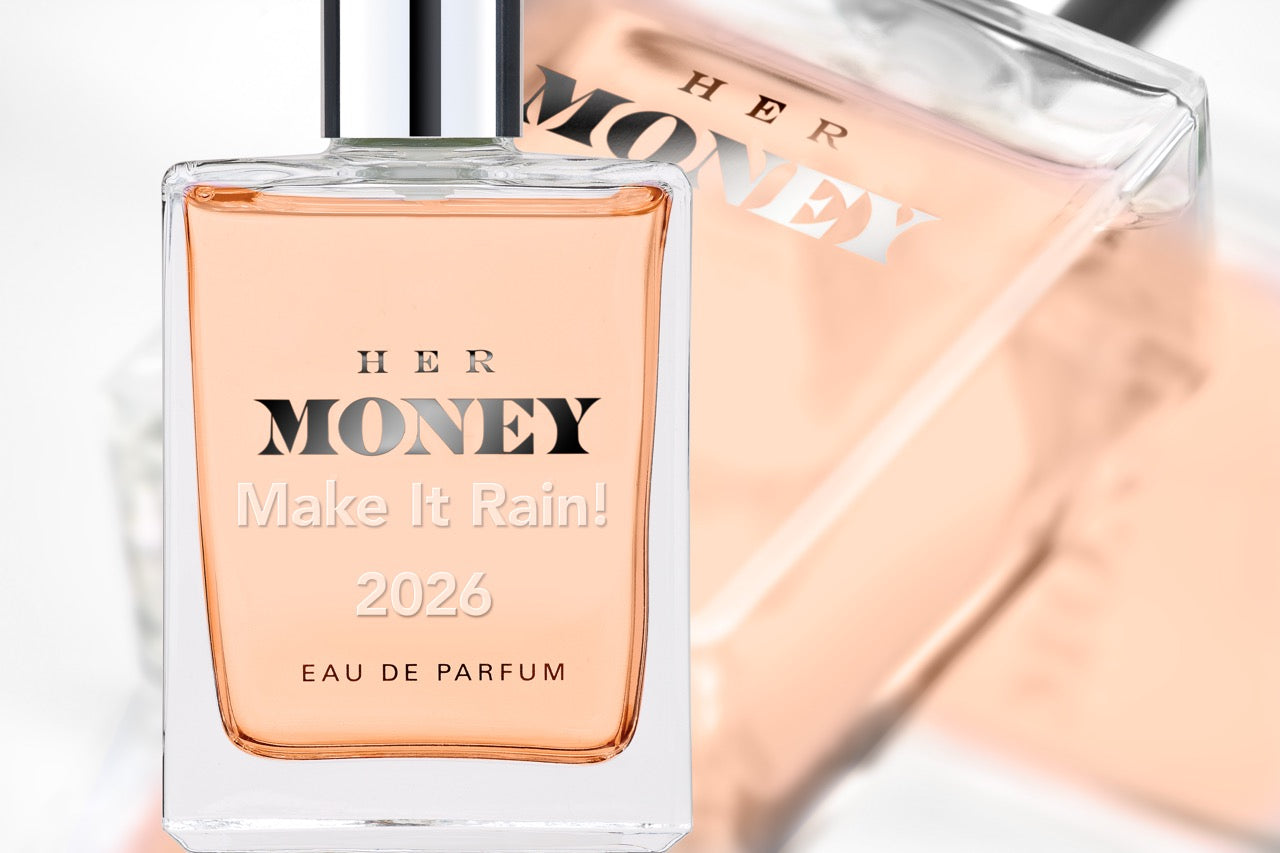 Her Money begins fresh linen, cotton and silk. These are the base notes of freshly minted U.S. currency. Vibrant pink grapefruit and mandarin pick up the theme, joined by freesia, passion fruit, Hawaiian wedding flower, and a soft hint of melon. Apply to your skin to create your own personal scent of success. Bold. Soft. Unforgettable.